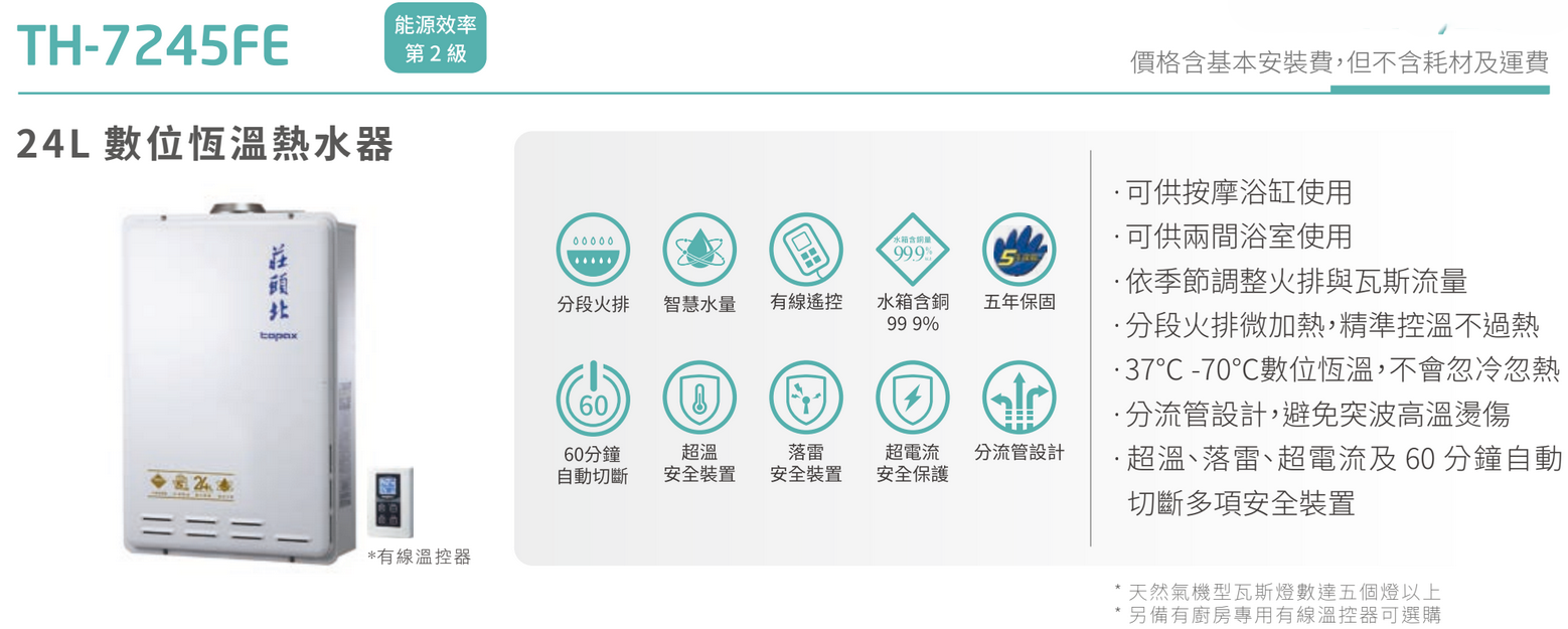 莊頭北 24L數位恆溫分段火排熱水器TH-7245FE